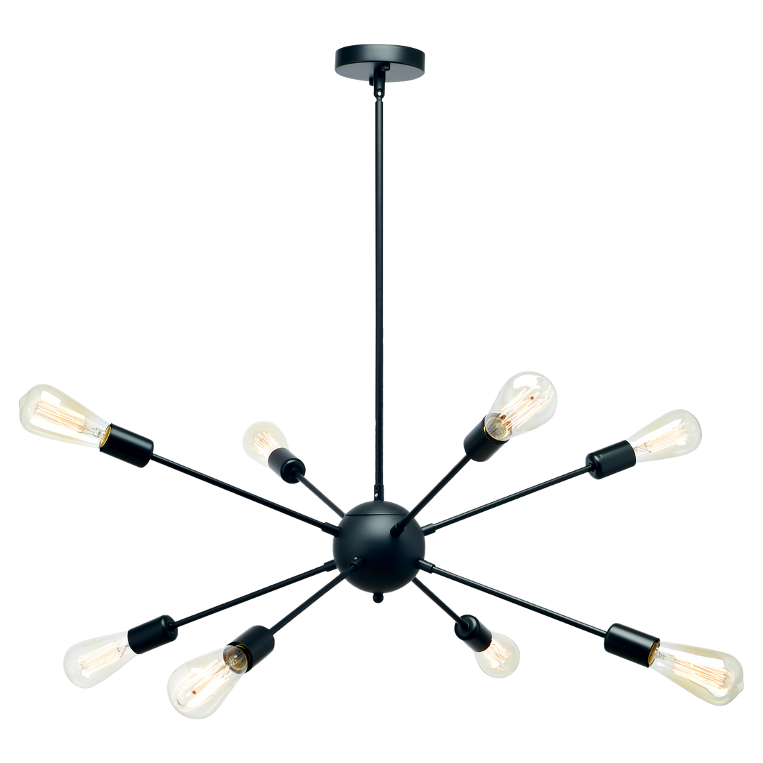 8 Lights Sputnik Chandeliers Black Mid Century Modern Pendant Light Industrial Vintage Ceiling Lights for Living Room Dining Room Bedroom Foyer