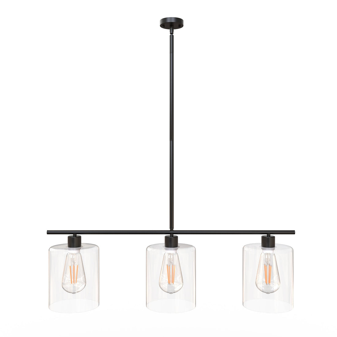 3-Light Island Pendant With Clear Glass Shades,Pendant Lighting for Dining Room Ceiling Light, Brushed Nickel Finish with Clear Glass,Black