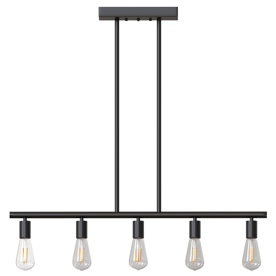 5 Light Modern Linear Chandelier,Black Farmhouse Kitchen Island Lighting,Industrial Dining Room Rectangular Light Fixtures for Living Room Foyer Bar