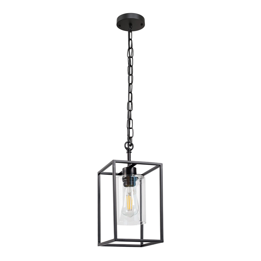 1-Light Industrial Metal Lantern Kitchen Pendant Light,Mini Black Finish with Clear Glass Shade,Adjustable Hanging Ceiling Light for Dining Room Kitchen Cafe Bar