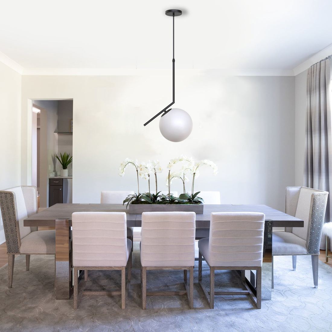 1-Light Straight Black Globe Pendant Light with White Frosted Glass Shade