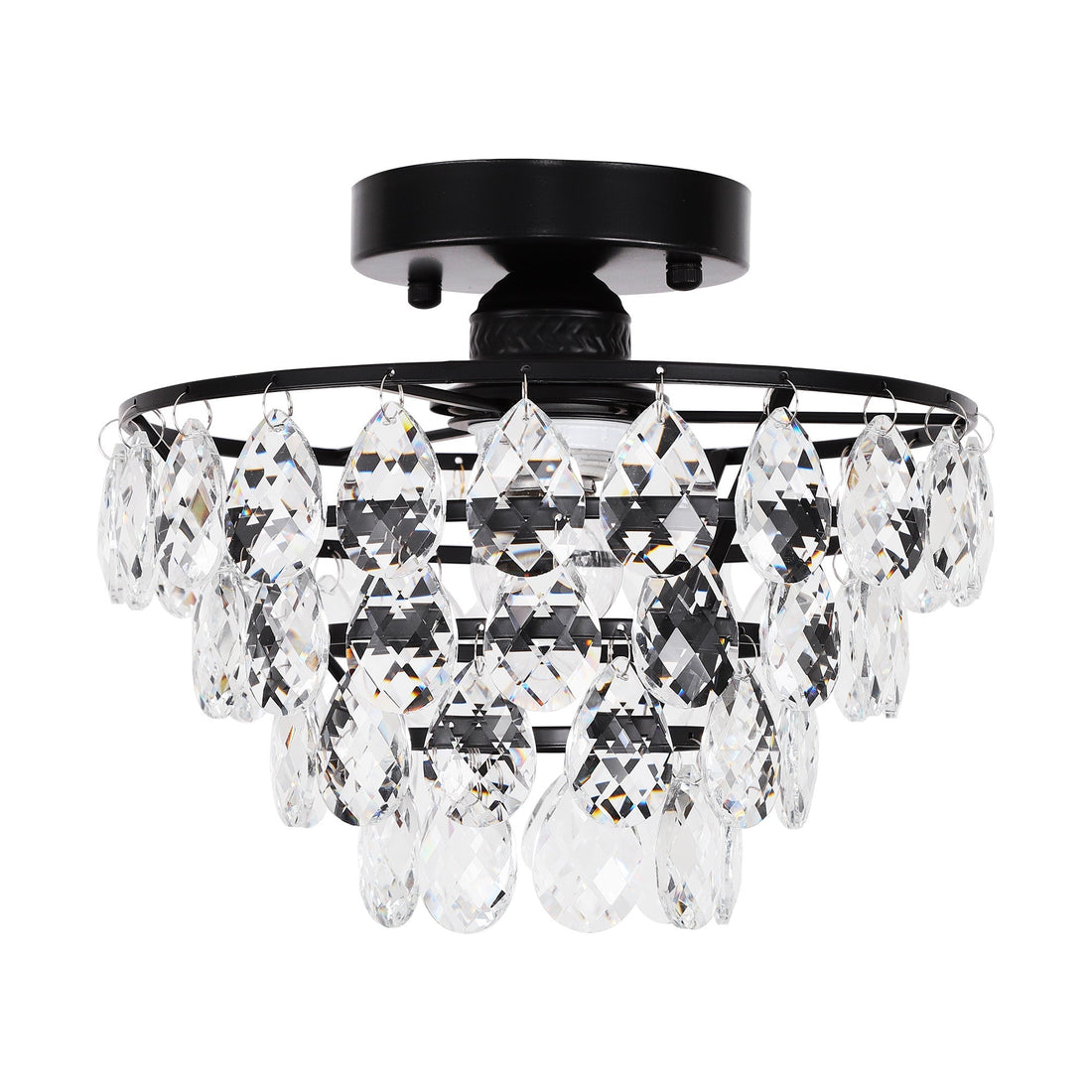 Semi Flush Mount Mini Ceiling Lighting Chandelier Fixture, Ceiling Light Fixture for Bathroom Bedroom Hallway Foyer Closet,Black