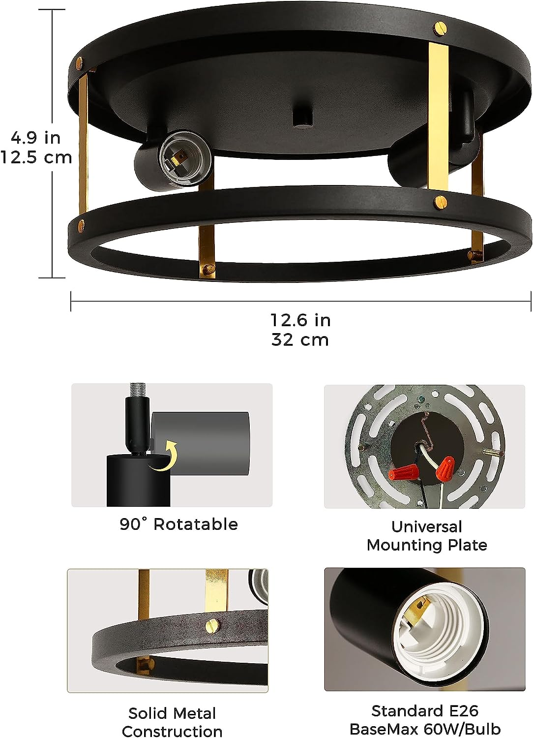 - 【High-Quality Construction】Our light fixtures ceiling mount use multi-layer paint process, rust and corrosion resistance, open metal cage design,which helps you to replace the bulb without disassembly, and no more worries about glass cleaning.