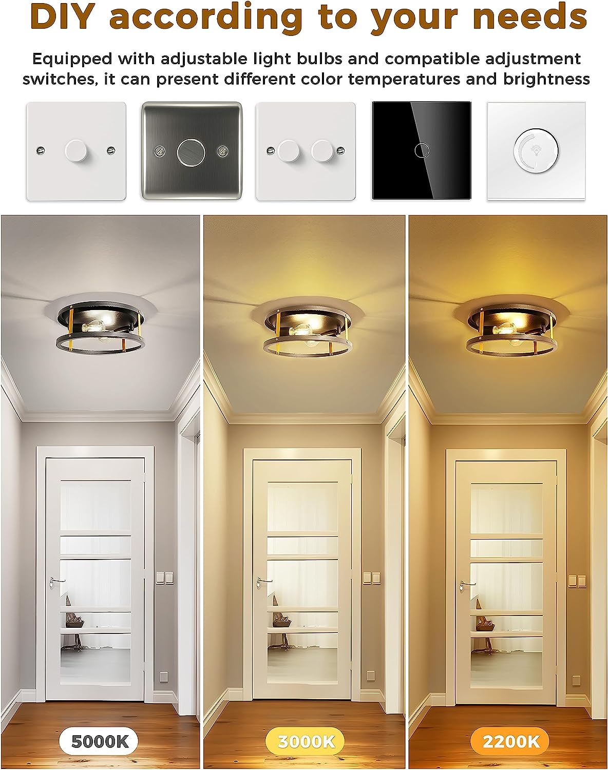 - 【Fit E26 Base Bulbs&Dimmable】The hallway light fixtures ceiling is compatible with a variety of E26 Base bulbs (bulbs not included) (Max 60W) and also meets your different color temperature needs when equipped with dimmable bulbs and a compatible dimmer switch (switch not included).