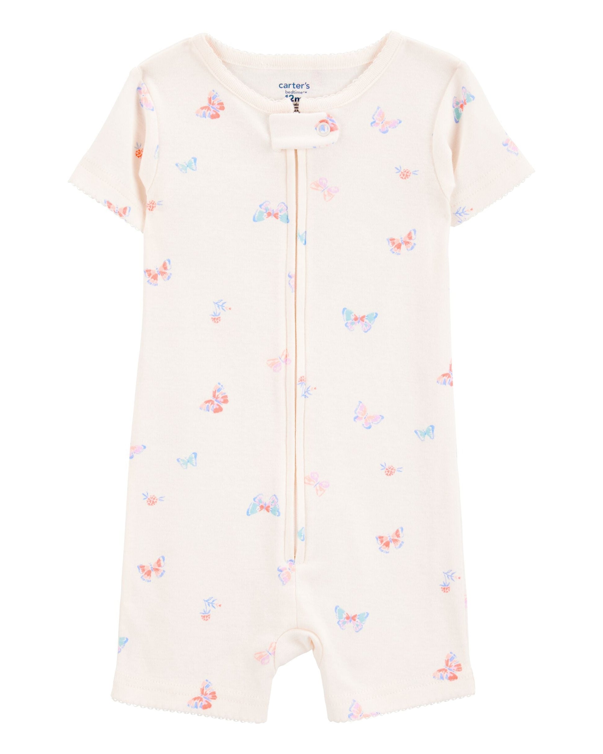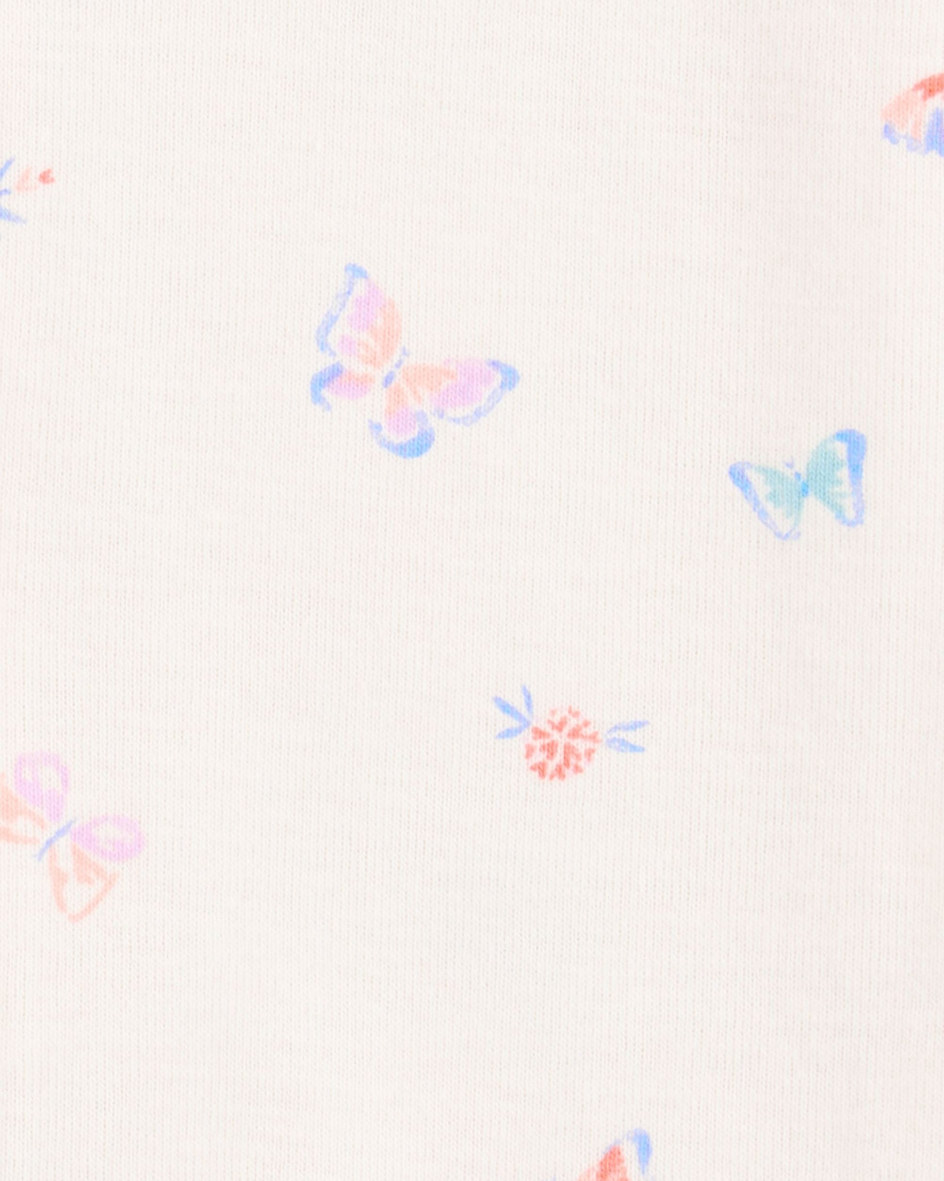 When your toddler's energy is non-stop, this soft cotton romper keeps up. With a dreamy ivory backdrop and scattered butterfly print, this one-piece is equal parts practical and playful. From bedtime hangs to midday lounging, the snug fit and zip-up design make diaper changes and laundry days a breeze.