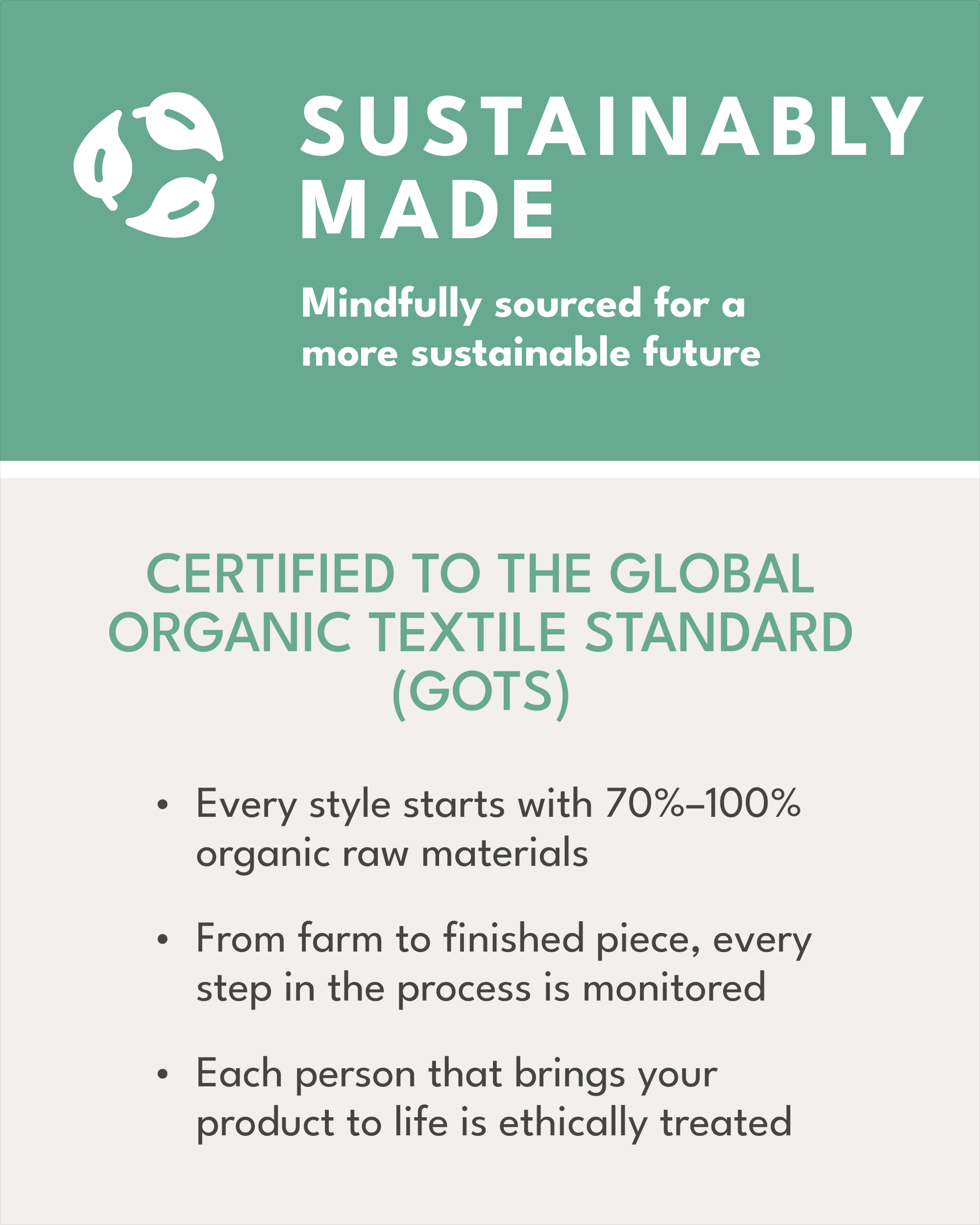 - Certified organic by the Global Organic Textile Standard (GOTS)